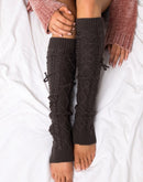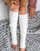 Long cable knit tie leg warmers. These yummy, thick knitted leg warmers are perfect for everything from lounging by the fire on a cozy afternoon to running errands tucked into your new boots.
