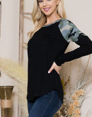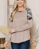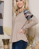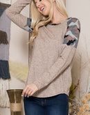 Reglan Camouflage Contrast Print Sleeve in Light Knit.