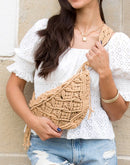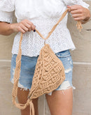 Macrame Sling BagDETAILSWoven Macrame DesignMaterial: 70%cotton/ 30%polyesterMeasurements: 12"x7.5"Adjustable Strap- Tie to desired lengthStrap Length: 35"LinedOpen InteriorZipper Top Closure Style: sling, crossbody Print / Pattern: macrame Embellishment: pocket Closure: zipper Dimensions...