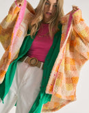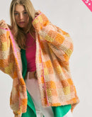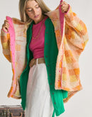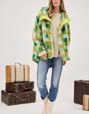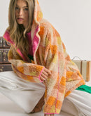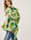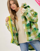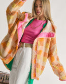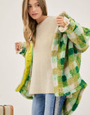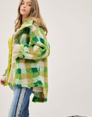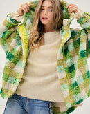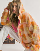 A perfect blend of style and playfulness in a comfortable design. This jacket features a plaid pattern on the back with contrasting binding details, creating a unique and dynamic look. The back also includes an adjustable elastic cord for a customizable fit.