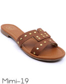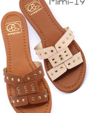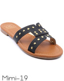 Handmade slide sandals with rivet stud details and a padded insole.Available Size Runs: 6(2) 7(4) 8(5) 9(4) 10(3) 7(2) 8(4) 9(5) 10(4) 11(3)*Please advise which size assortment you'd prefer or...