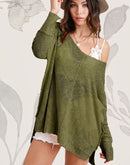 Oversized stretchy sweater top with v-neckline with drop shoulders and long sleeves, reverse stitching top.