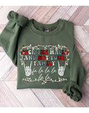 DECK THE HALLS AND NOT YOUR FAMILY,FALALAL,SKELETON HANDS UNISEX FLEECE SWEATSHIRT