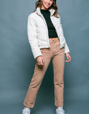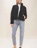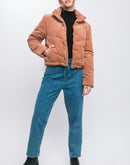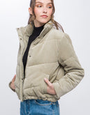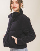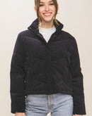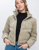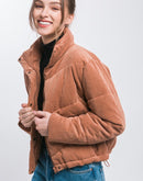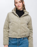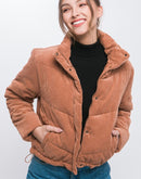 Corduroy Puffer Jacket with Toggle Detail