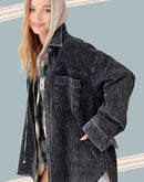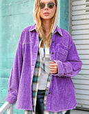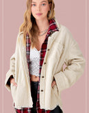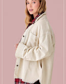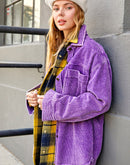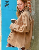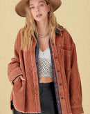 This corduroy layer features a washed finish for unique & lively flair. Cut in a oversized fit with a collar, button placket and matching button cuffs. Finished with dropped long sleeves, oversized front pocket at the front. This jacket is the perfect mix of classic and fun! The versatility of this jacket make it a closet staple that you will wear over and over again this season.