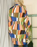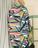 Geometric knit jersey print dolman cardigan with sleeve band.