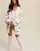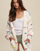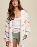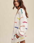 Hand Crochet Knit Stripe Design Open Cardigan
